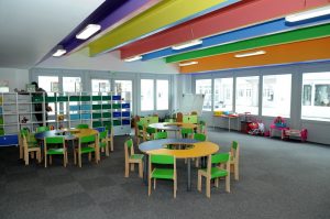 Luni, în prima zi de cursuri, peste 100 de copii s-au bucurat de noul spațiu cu pereți zugrăviți în culori calde, desprinse din spectrul curcubeului, cu mobilier modern (mese, scaune, dulăpioare, vestiare) – realizat din lemn, special pentru noua grădiniță, în aceleași tonuri vii și calde – , cu băi moderne, colorate, cu dotări adecvate pentru cei mici și care beneficiază – în premieră pentru o grădiniță de stat din România – inclusiv de cabine de duș.